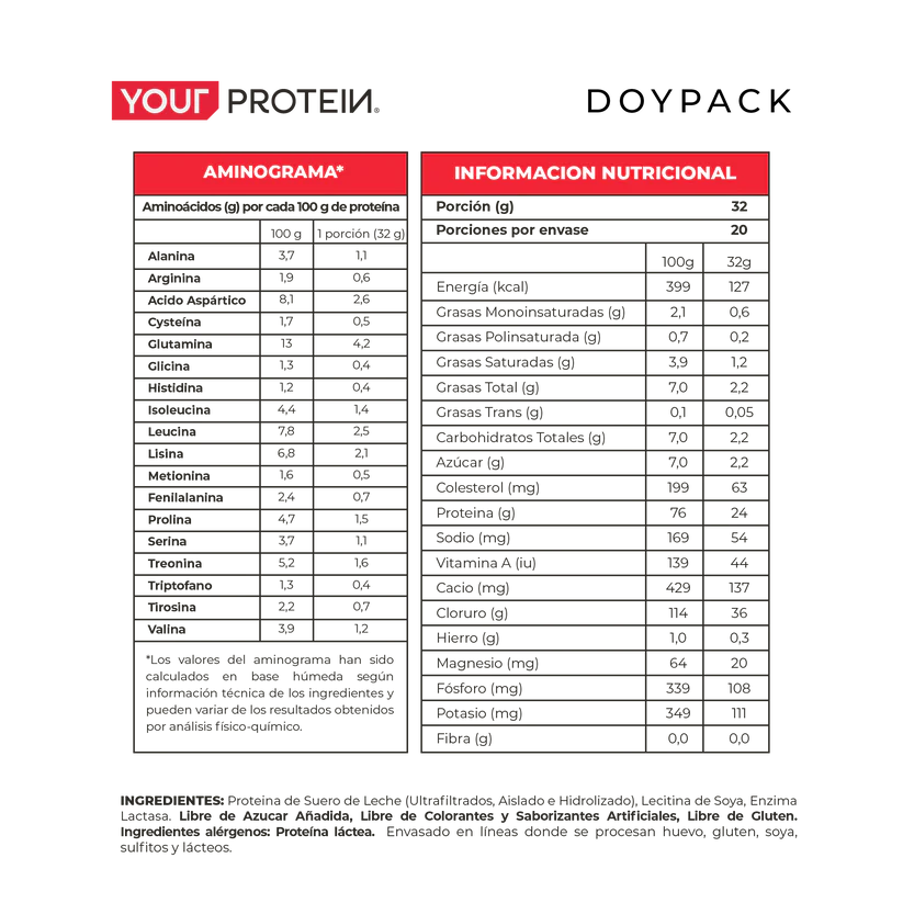 YOUR PROTEIN es la primera proteína sin sabor del mercado, puedes preparar desde unas exquisitas galletas, muffins, masas para pizza, pan pita, o un rico smoothie sin que se vea afectado el sabor. Además, contiene enzima lactasa, lo que facilita la digestión de la proteína para aquellos que son intolerantes a la lactosa, para que puedas consumirla sin problema alguno.