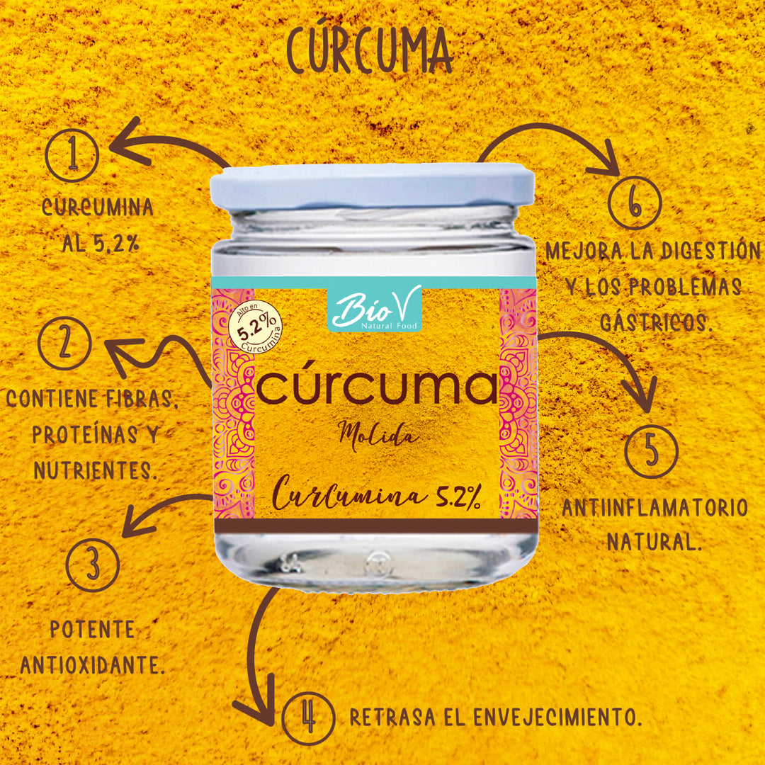 Cúrcuma, con curcumina al 5.2%, compuesto al que se le atribuyen sus beneficios.