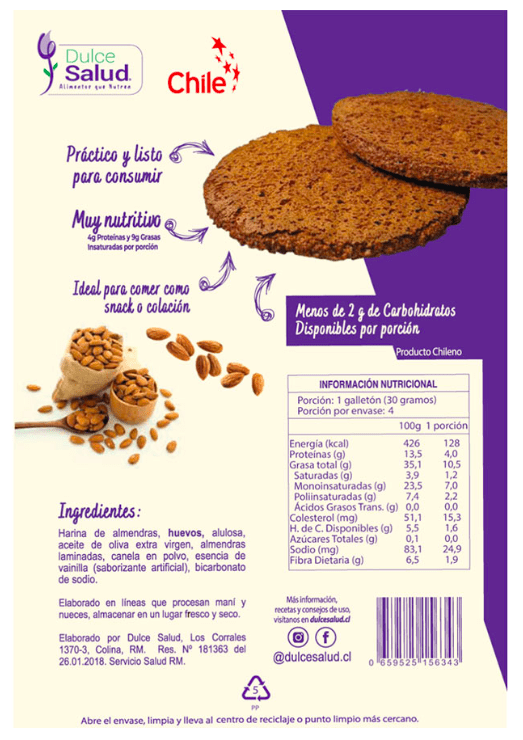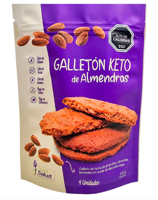 Crujiente y nutritivo galletón elaborado a base de harina de almendras y almendras laminadas, con aceite de oliva extra virgen. Libre de gluten, azúcar, lácteos, soya y con menos de 2g de carbohidratos disponibles por porción.