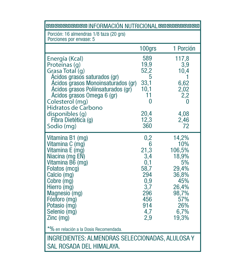 Ingredientes: Almendras seleccionadas, Alulosa, Sal Rosada del Himalaya.