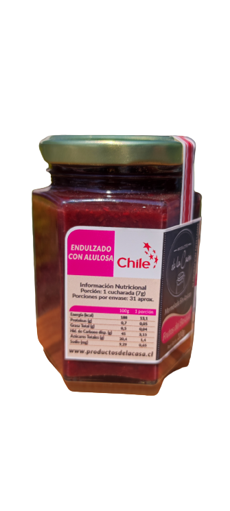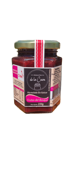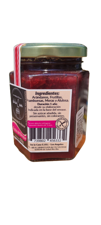 Mermelada tradicional de Frutos del Bosque, endulzada con alulosa, preparada artesanalmente con frutas frescas.