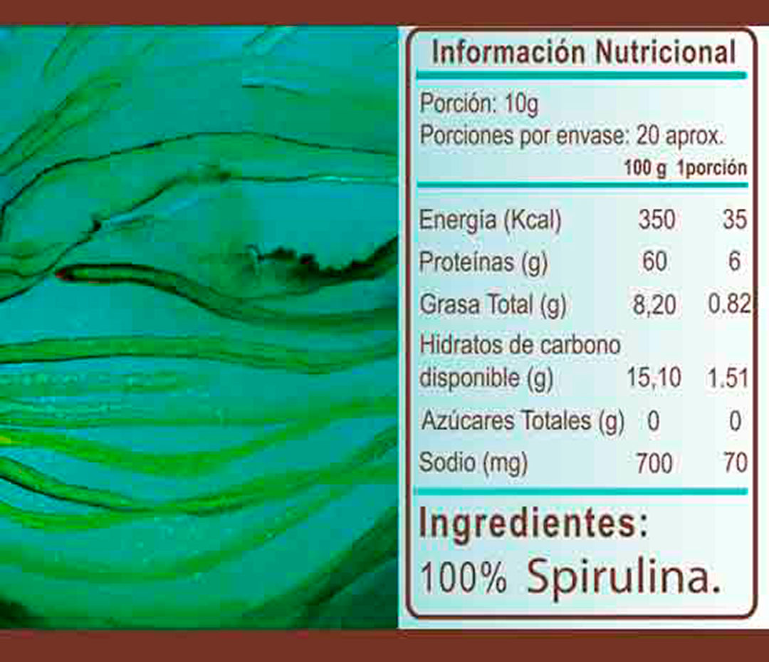 La espirulina es un alga unicelular verdeazulada, fuente importante de proteínas, vitaminas y minerales.